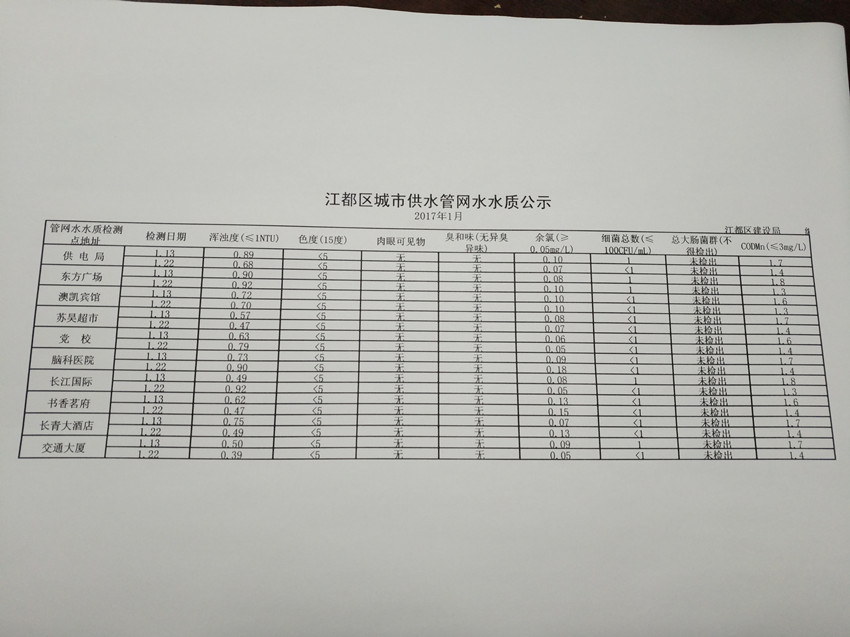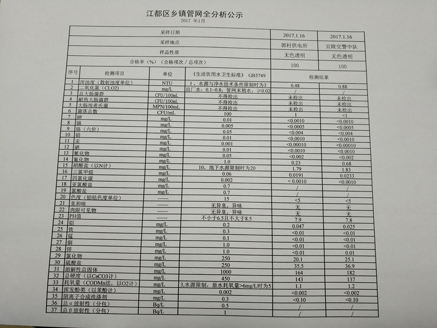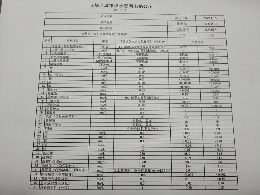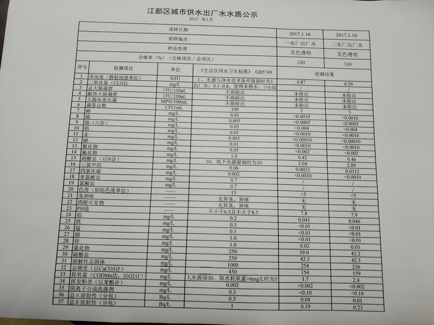 水質(zhì)公示