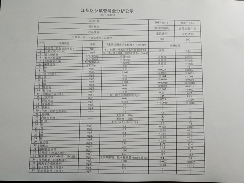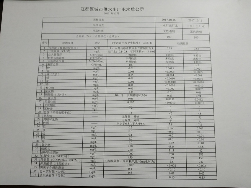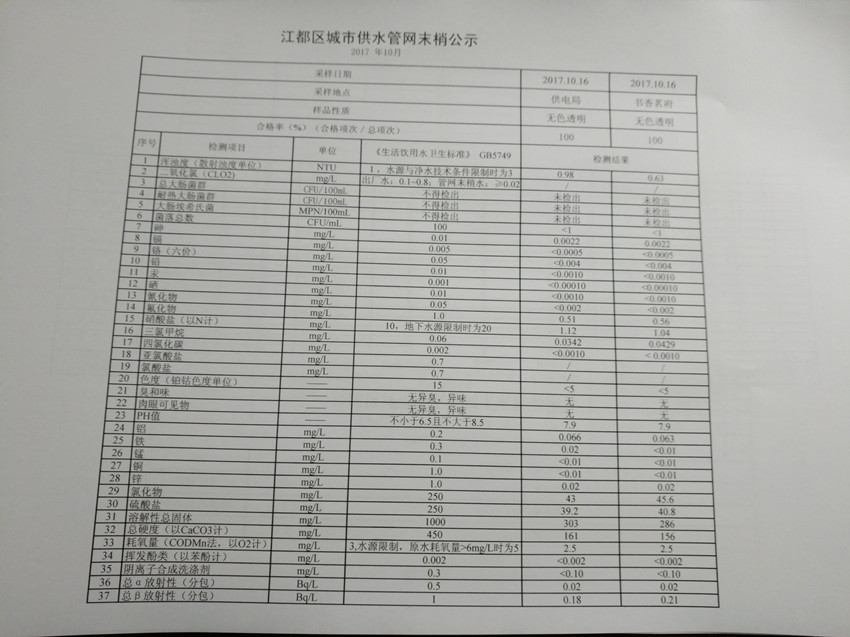 水質(zhì)公示